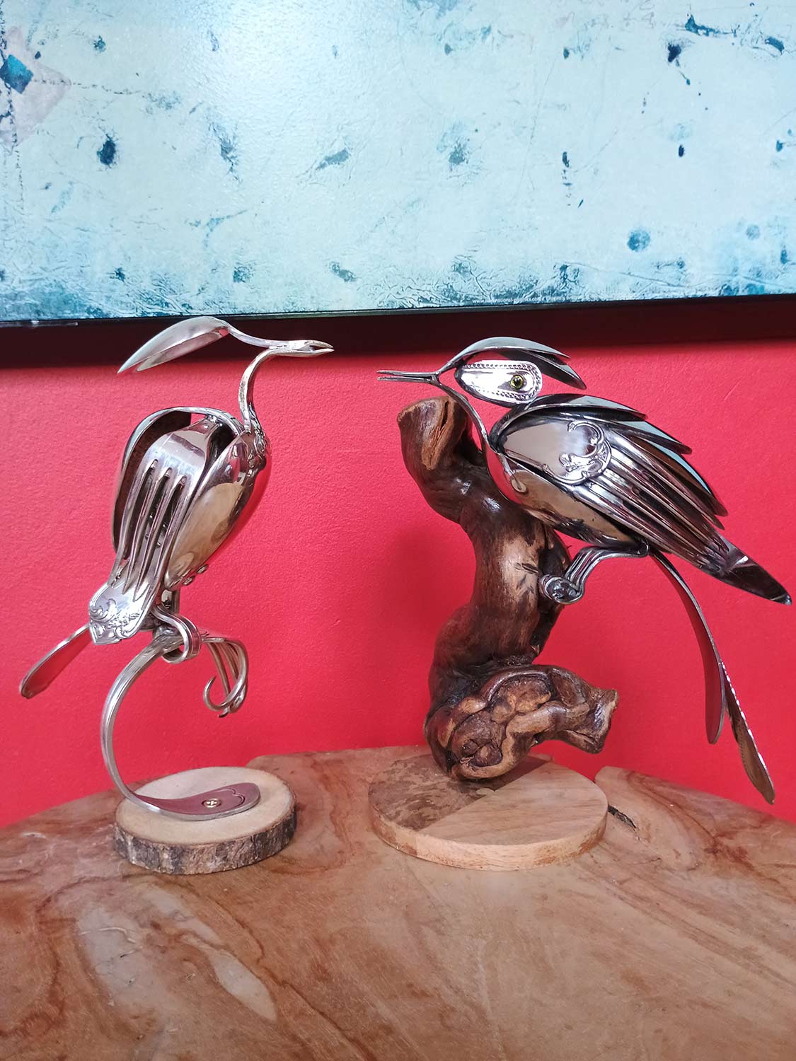 Vous y découvrirez des pièces réalisées dans des matériaux aussi divers que le métal recyclé, l’argile,la restauration de voitures,etc.