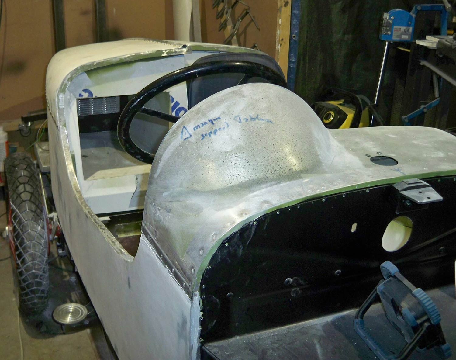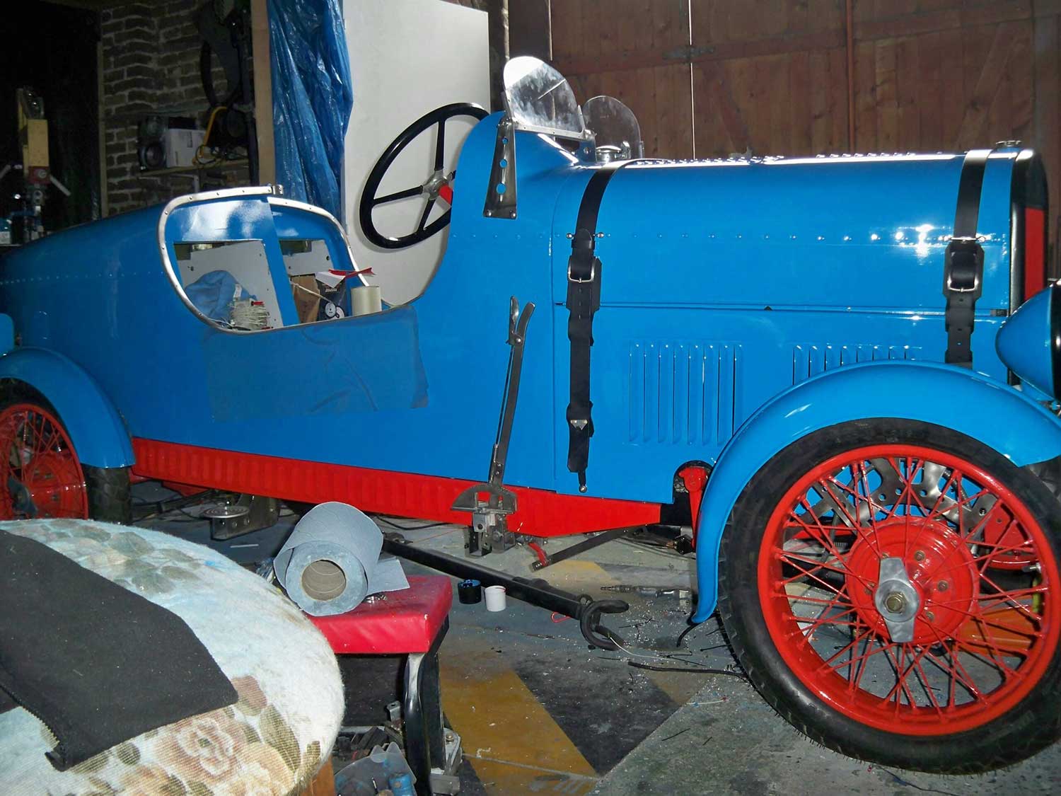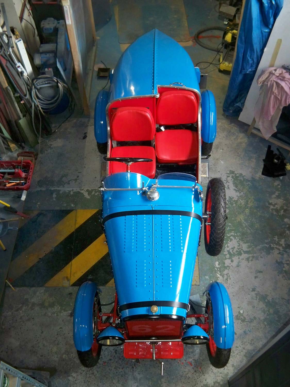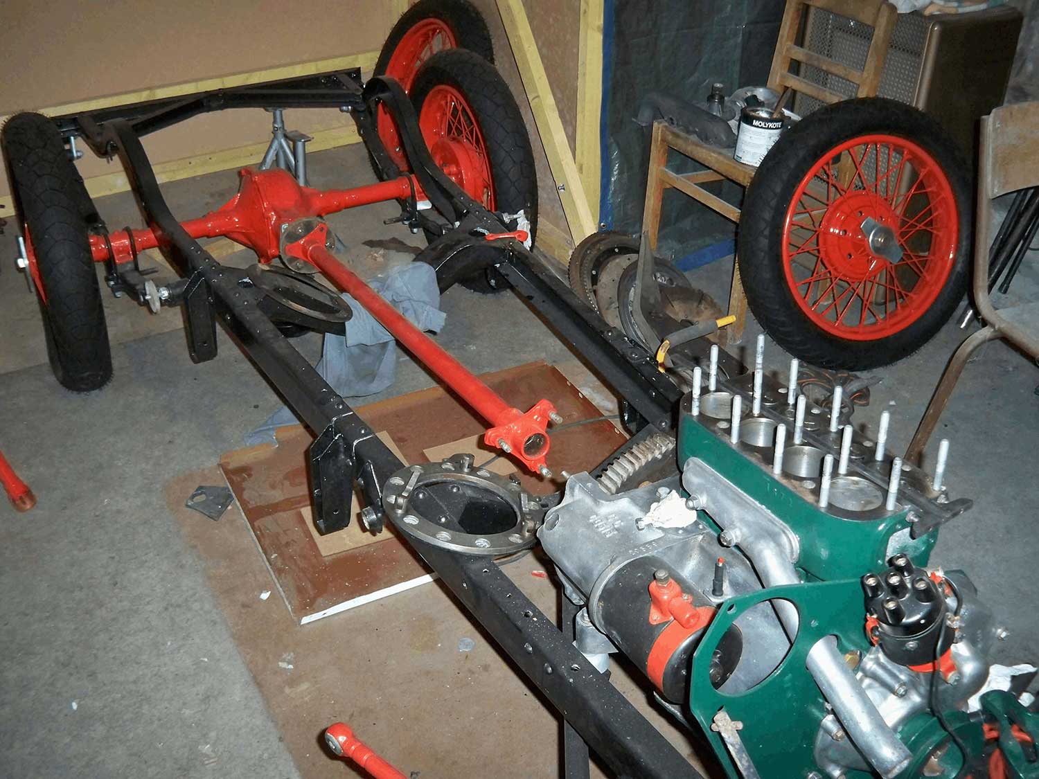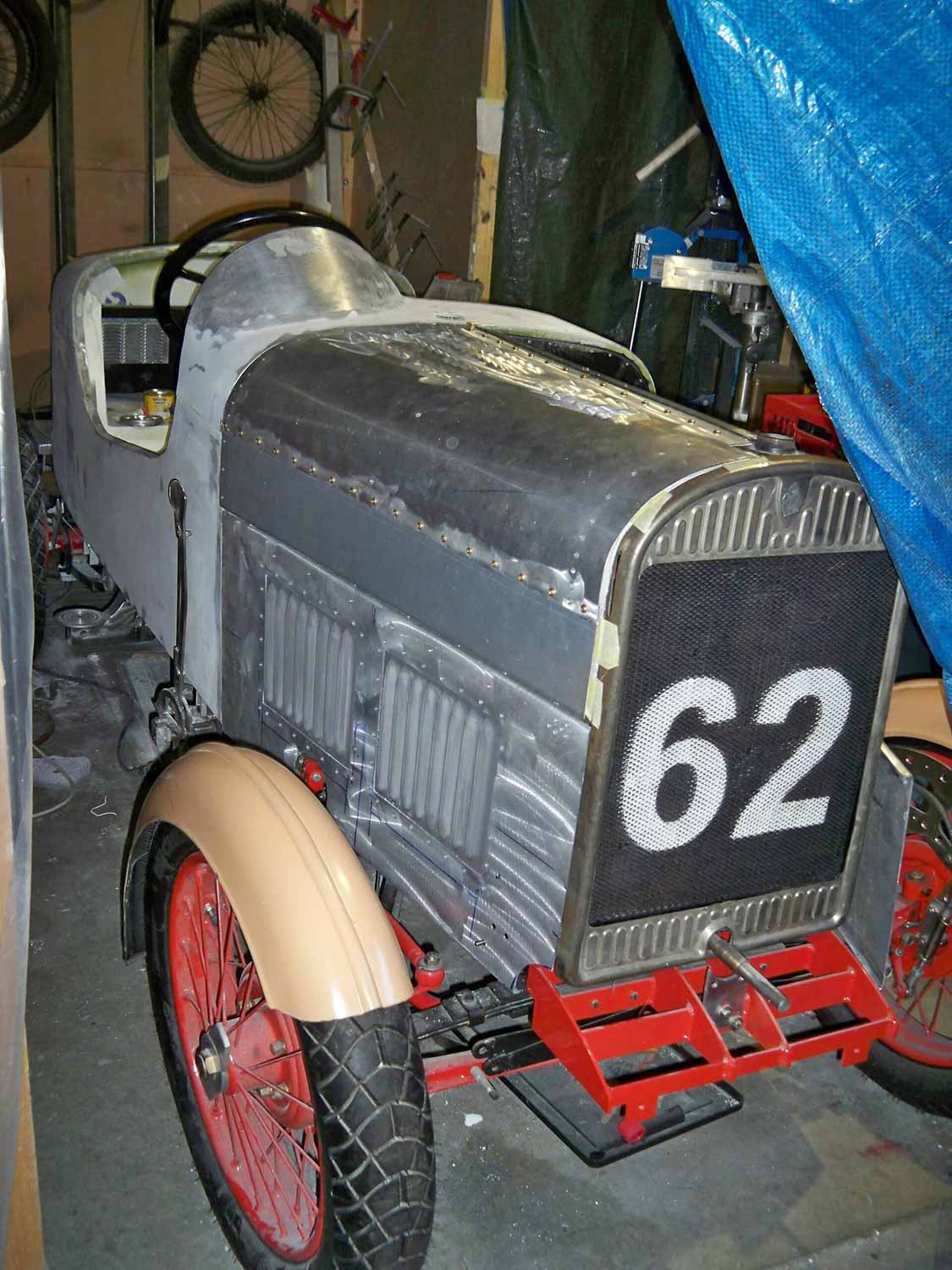 D’abord, a partir du châssis d’origine, une refabrication complète de la voiture Rosengart sport pointe Bordino de 1930.